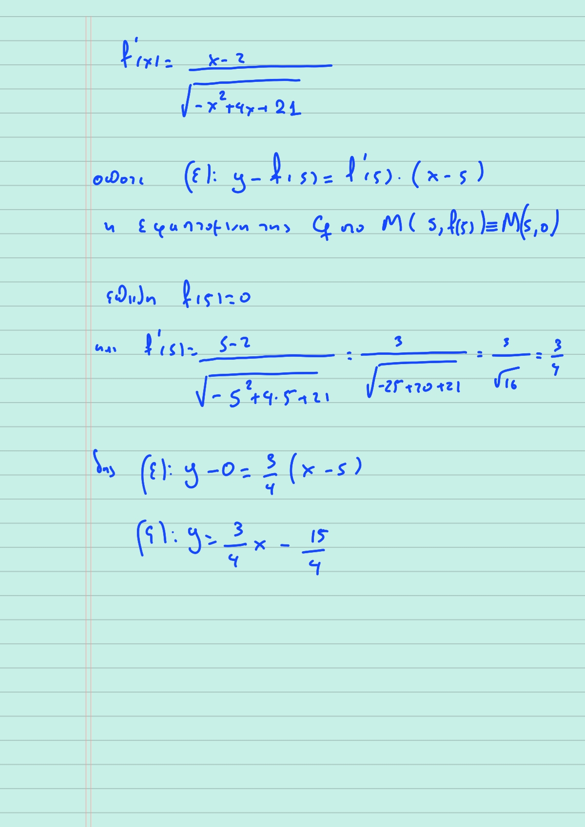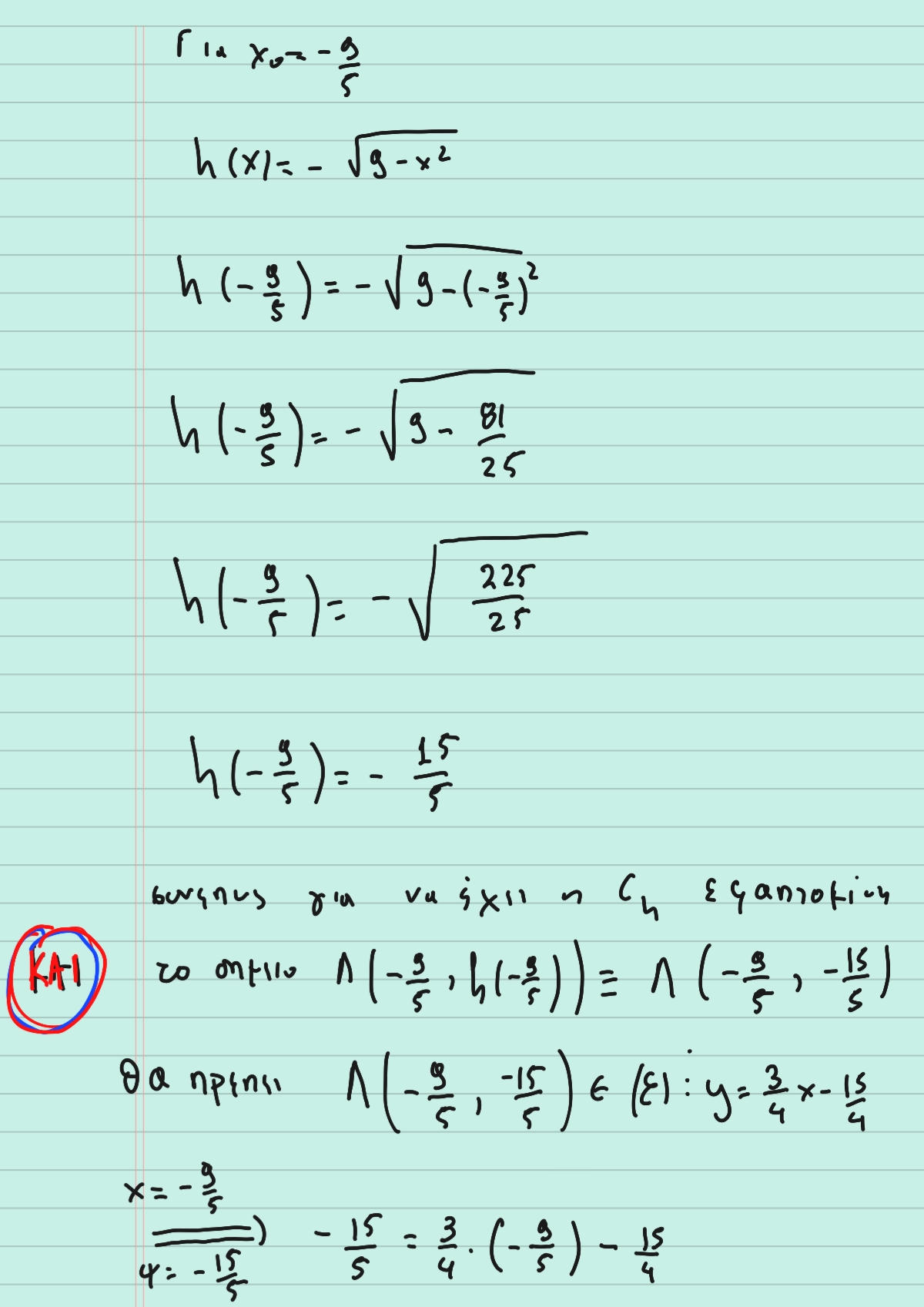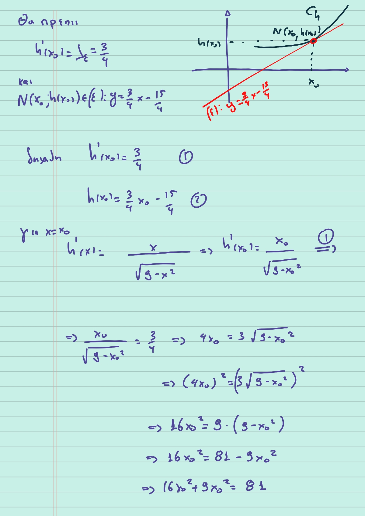 Δείτε εδώ τον τρόπο που εξετάζουμε εαν μια γνωστηή ευθεία είναι εφαπτομένη μιας συνάρτησης σε ένα σημείο της γραφικής της παράστασης