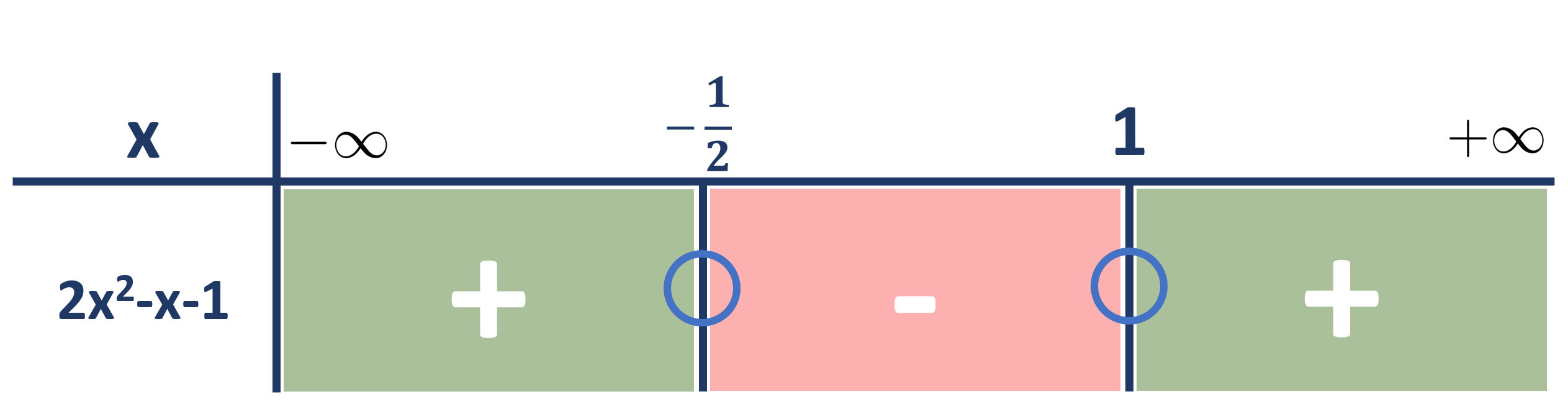 \[2x^2 - x - 1 \geq 0 \Leftrightarrow \bigg(x \leq -\dfrac{1}{2} \quad \text{ή} \quad x \geq 1\bigg) \Leftrightarrow\]