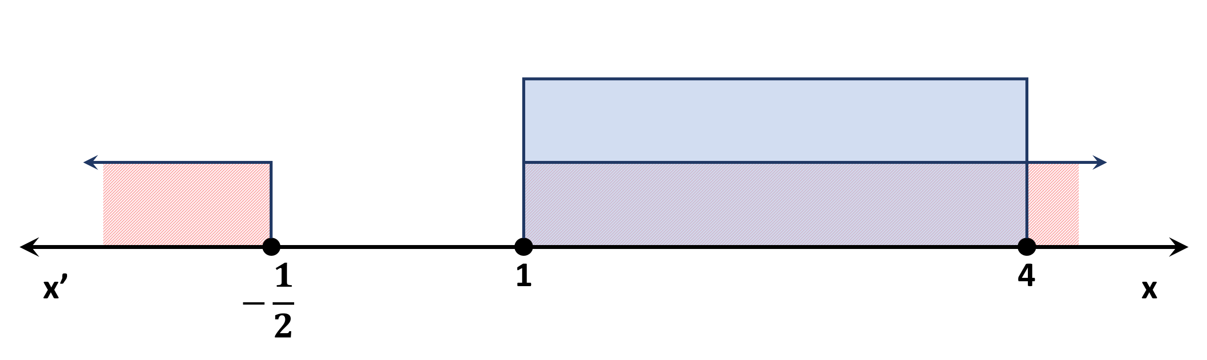 \[-1 \leq x \leq 4 \Leftrightarrow x \in [1, 4]\]